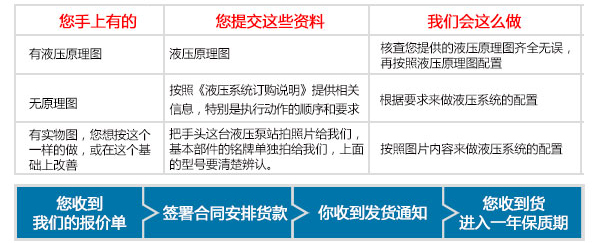 做一臺液壓系統需要客戶提供液壓要達到什么樣的功能要求。液壓系統的整個工作過程。比如一共有幾個油缸或馬達,每個油缸需要達到多少推力,每個油缸的速度是多少是否有變化,以及每個油缸的負載情況。多個油缸時,是否有同時工作或同步要求。(是否變化、還需要提供工作時間、工作環境)