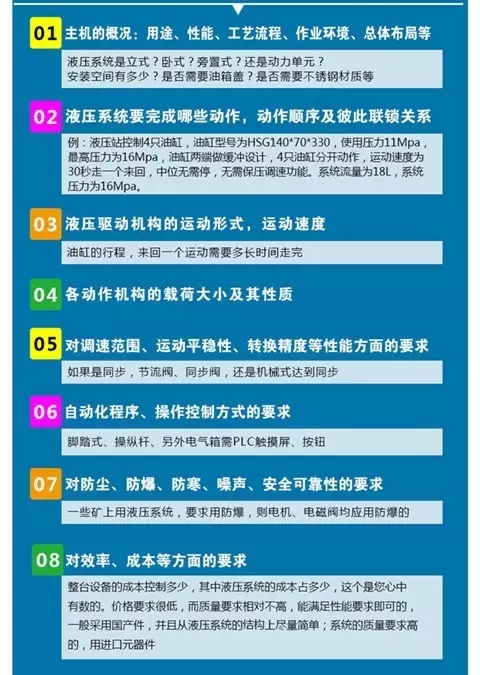 當然,還有第四種情況,您手上只有液壓系統的型號。按照液壓系統型號命名方式,有了型號,我們只知道該液電機功率、閥組數、系統壓力,能大概報價,但做出來的液壓站無法保證滿足需求,原因參考1《液壓系統配置過程》。