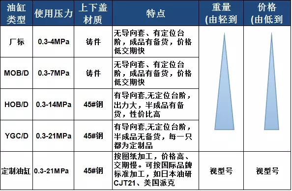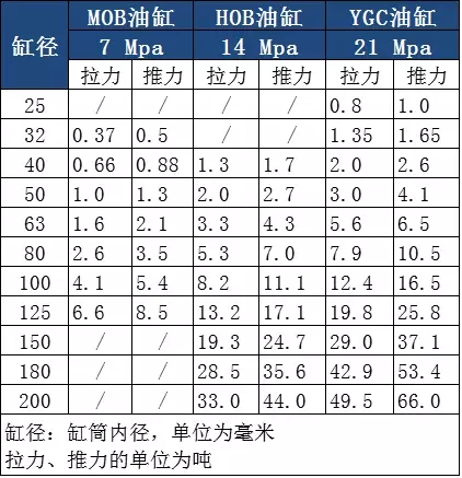 MOB拉桿油缸有定位臺(tái)階,HOB與YGC/YGD油缸無(wú)定位臺(tái)階。拉桿油缸選型建議