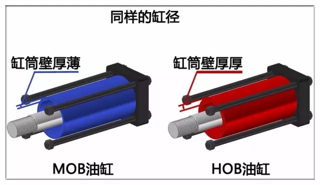 第二、外形的不同 1.缸筒壁厚▼