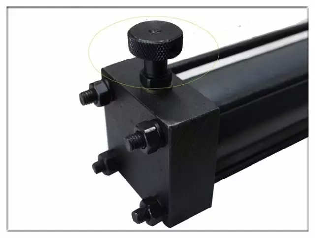用緊固螺栓把油缸安裝到設(shè)備上,但承重時(shí)軸方向,安裝基座上加個(gè)阻塊會(huì)更好。